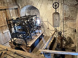| Stadtturm Enns Uhrwerk mit Gewichten | Eigenes Werk | Dieringer63 | Datei:Stadtturm Enns Uhrwerk mit Gewichten.jpg |
