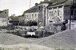 | Stadtwerkstatt 1985, Kunstinstallation "Frühstück in der Kurve". Im Hintergrund das alten Gebäude der Stadtwerkstatt in der Friedhofstraße 6 . | Eigenes Werk | Ixl4070 | Datei:Frueh016m.jpg |