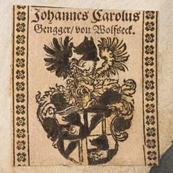 | Wappen des Johannes Karl Gienger von Wolfseck - Wappensammlung - BSB Cod.icon. 307; Seite 375 | http://codicon.digitale-sammlungen.de/Blatt_bsb00020245,00375.html?prozent=1 | Anonym Unknown author | Datei:COA Gengger v Wolfseck 375.png | |
