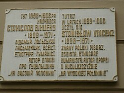 | Erinnerungstafel an de:Stanisław Vincenz | Eigenes Werk | Tomasz Leśniowski | Datei:KolomyjaTablicaVincenz2009.JPG | |