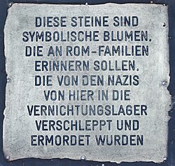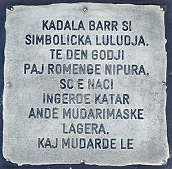 | Erinnerungsstein für Rom-Familien in Romanes | Christian Michelides | Christian Michelides | Datei:Erinnerungsstein für Rom-Familien in Romanes.JPG | |