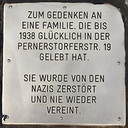 EINE FAMILIE, DIE BIS 1938 GLÜCKLICH IN DER PERNERSTORFERSTR. 19 GELEBT HAT. SIE WURDE VON DEN NAZIS ZERSTÖRT UND NIE WIEDER VEREINT. |