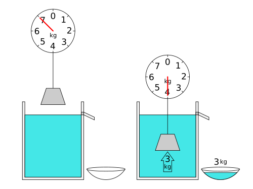 | illustration for buoyancy. | Auftrieb Archimedes 1.svg | Johannes Kalliauer | Datei:Auftrieb Archimedes 1 Resultant.svg | |