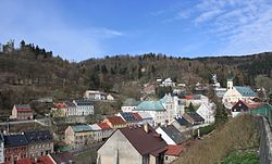 | Blick über Jáchymov mit Schlickturm, Rathaus und Kirche | Eigenes Werk | Devilsanddust | Datei:Jáchymov 2016 a.jpg | |
