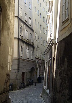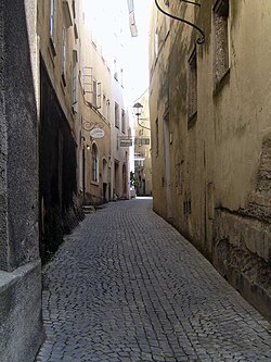 | Steingasse in Salzburg, facing South | Eigenes Werk | Gilibean | Datei:Steingasse-bei-Das-Kino-Richtung-Norden.jpg | |