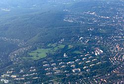 Landing in Vienna on August 2, 2014. Window seat on the pilot’s side. Approach takes you over the city of Vienna and, it was a beautiful day. | Vienna Steinhof Church Aerial 2aug14 - 1 | Andrew Nash from Vienna, Austria | Datei:Vienna Steinhof Church Aerial 2aug14 - 1 (15102404601).jpg | |