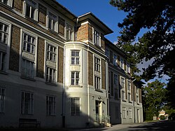 Im V-Gebäude befindet sich die Ausstellung "Der Krieg gegen die Minderwertigen" des Österreichischen Dokumentationsarchivs (Eingang zur Ausstellung rückseitig). | Eigenes Werk | Haeferl | Datei:Wien - Steinhof - V-Gebäude.jpg | |