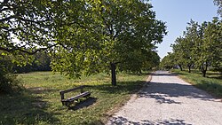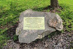 Gedenkstein mit Tafeln im Erholungsgebiet „Steinhofgründe“ im 14. Wiener Gemeindebezirk Penzing. Die Steinhofgründe, ein rd. 40 Hektar großes Areal, entstanden im Zuge des Baus des Otto Wagnerspitals. Ursprünglich wurden in diesem Bereich Schweine, Rinder und Kühe für die Versorgung des Spitals gehalten: 1 . Ende der 1970er-Jahre sollte dieses Gebiet verbaut werden. Nach Protesten gab es vom 9. bis 11. Dezember 1981 eine Volksbefragung, bei der sich rd. 140.000 Wiener gegen die Verbauung der Steinhofgründe aussprachen. Dies war eine wichtige Grundlage zur Schaffung des heutigen Erholungsgebietes. Der Gedenkstein, der an einer Wegkreuzung in der Nähe des Eingangs Feuerwache Am Steinhof errichtet wurde, erinnert an diese Bürgerinitiative: 2 . | Eigenes Werk | C.Stadler/Bwag | Datei:Wien - Steinhofgründe, Gedenkstein.JPG | |