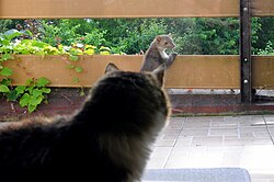 | Kot domowy obserwuje kunę, która pojawiła się na balkonie. | Eigenes Werk | Stiopa | Datei:Kot i kuna.jpg | |