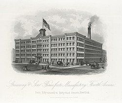 1860 bereits, nur sieben Jahre nach Unternehmensgründung, erbaute man auf dem kompletten Block zwischen der 52. und 53. Straße an der 4th Avenue eine große Klavierfabrik, die nach dem Kapitol in Washington den zweitgrößten umbauten Raum des amerikanischen Kontinents umfasste. Frühzeitige Ausstellungserfolge hatten 1855 im Crystal Palace eine hohe Nachfrage nach den außergewöhnlich gut gefertigten Instrumenten erzeugt.