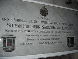 | Grab des k.u.k. Generalobersten Stefan Freiherr Sarkotić von Lovćen am Zentralfriedhof Wien - Neue Arkaden | Eigenes Werk | ViennaUK | Datei:Sarkotic-Lovcen tomb DSC04441.jpg | |