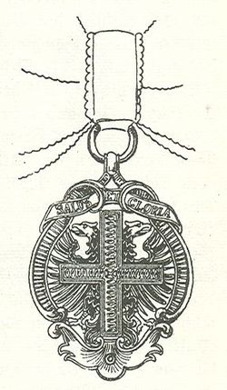 Die Dekoration, die viermal geändert wurde, besteht jetzt aus einem kaiserlichen Adler, auf dem ein achteckiges rotes Kreuz auf einem blauen liegt. Am oberen Rand der medaillonartigen Fassung zieht sich ein weiß emailliertes Band mit der Devise: „Salus et Gloria“ (Heil und Ehre) hin. Der Orden wird am schwarzen Band getragen. Ordensfesttage sind der 3. Mai (Gründung) und das Fest Kreuzerhöhung am 14. September.