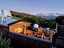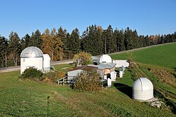 | Die Sternwarte Gahberg in der oberösterreichischen Gemeinde Weyregg am Attersee. Das Observatorium auf dem 864 m hohen Gahberg und rd. 3 km nordöstlich von Weyregg wird vom Verein Astronomischer Arbeitskreis Salzkammergut betrieben. Die offizielle Eröffnung der Sternwarte erfolgte nach zweijähriger Bauzeit im Jahr 1988, wobei sie anschließend mehrfach erweitert wurde. | Eigenes Werk | C.Stadler/Bwag | Datei:Weyregg - Sternwarte Gahberg.JPG |