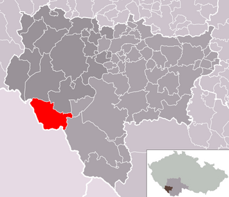 | Lage von Strážný im Bezirk Prachatice | ||||