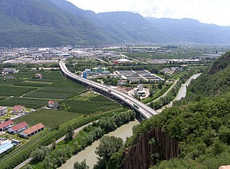 | Mebo-Schnellstraße (SS38), zwischen Sigmundskron (Firmian), Etsch und Bozen | Eigenes Werk | Hubert Berberich ( HubiB ) | Datei:MeboFirmianBozen.jpg | |