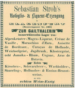 Im Jahr 1832 begann Sebastian Stroh[2] mit der gewerbsmäßigen Erzeugung von Likören und Edelbränden in Klagenfurt. Das Unternehmen erweiterte im Laufe des 19. Jahrhunderts seine Produktpalette und konnte auf der Weltausstellung Paris 1900 die große Goldmedaille entgegennehmen. Im Jahr 1926 konnte man von ca. 100 verschiedenen Bränden insgesamt 1,2 Millionen Flaschen abfüllen.