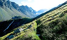 | Letzter Anstieg vor dem Erreichen der Bremer Hütte | Eigenes Werk | The jackal100 | Datei:Etappe zwischen Nürnberger Hütte und Bremer Hütte.jpg | |