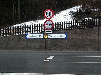 | Seltene Beschilderung mit dem überholten Straßenschild "Bundesstraße ohne Vorrang" in Fulpmes | |||||||||||||||||||||||||||||||||||||||||||