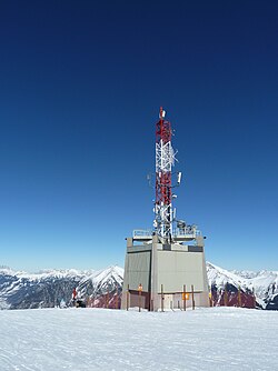| ORF-Sendeanlage auf dem Gipfel des Stubnerkogels. Der Stubnerkogel (2246 m) ist ein Berggipfel westlich oberhalb des Kurortes Bad Gastein, der entweder zu Fuß oder mit der Stubnerkogelbahn von dort aus erreichbar ist. Er wird im Sommer und im Winter als Aussichtsberg und im Winter vor allem als Skigebiet genutzt. Im Gipfelbereich des Stubnerkogels befinden sich mit der Hängebrücke und der Aussichtskanzel zwei Attraktionen, die auch für Nichtskifahrer und für Sommergäste Anlass zu einem Besuch sind. Zudem bietet der Gipfelbereich, wo sich auch die Terrasse des Bergrestaurants befindet, einen grandiosen Rundblick über das Gasteinertal und die umgebende Bergwelt. | Eigenes Werk | Wald1siedel | Datei:Stubnerkogel12.JPG |