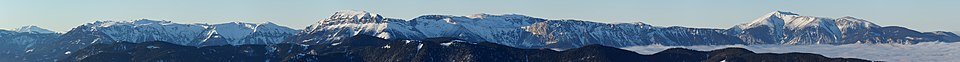 Blick vom Stuhleck in Richtung Norden. Von links nach rechts: Ötscher, Schneealpe, Rax und Schneeberg. Standpunkt | Eigenproduktion | Rupert Weinfurter | Datei:Stuhleck1.jpg |