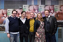 | l.n.r.: Thomas Mraz , Nikolai Gemel , Karl Markovics , Ulrike Beimpold und Rainer Wöss bei der Wien-Premiere von Superwelt im Gartenbaukino in Wien , Österreich . | Eigenes Werk | Manfred Werner - Tsui | Datei:Ulrike Beimpold Rainer Wöss Karl Markovics Nikolai Gemel Thomas Mraz Superwelt Wien-Premiere Gartenbaukino.jpg |