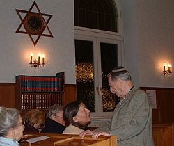 | Marko Feingold in the Salzburg synagogue Photograph by Gakuro 2005 | Die Autorenschaft wurde nicht in einer maschinell lesbaren Form angegeben. Es wird angenommen, dass es sich um ein eigenes Werk handelt (basierend auf den Rechteinhaber-Angaben). | Die Autorenschaft wurde nicht in einer maschinell lesbaren Form angegeben. Es wird Gakuro als Autor angenommen (basierend auf den Rechteinhaber-Angaben). | Datei:Feingold1.jpg | |