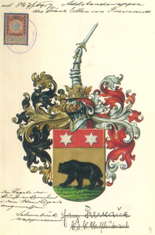 - ↑ Arno Kerschbaumer, Nobilitierungen unter der Regentschaft Kaiser Karl I. / IV. Károly király (1916–1921), Graz 2016, S. 23.