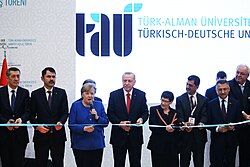 Bereits im Jahr 2017 wurde das „Forschungszentrum für Migration und Integration (TAGU)“ als ein fachspezifisches Forschungszentrum des Rektorats an der TAU gegründet.[25] Im Januar 2020 eröffneten die deutsche Bundeskanzlerin Angela Merkel und der türkische Staatspräsident Recep Tayyip Erdoğan offiziell den Campus.[26][27] Im selben Jahr waren 45 Lehrkräfte aus Deutschland an der Universität beschäftigt.[28] Bereits im Jahr 2019 war auch das „Allianz Erdbeben- und Brandforschungszentrum“ auf dem Gelände der Universität eröffnet worden.[29] Am 7. Juli 2021 wurde der erste Baustein des Technoparks im Bezirk Çekmeköy gelegt. Es stellt ein gemeinsames Projekt der Türkisch-Deutschen Universität und der Recep-Tayyip-Erdoğan-Universität dar.[30] Im Dezember desselben Jahres wurde ein Büro der Deutschen Gesellschaft für Internationale Zusammenarbeit auf dem Campus eröffnet.[31] Im Juli 2022 wurde das „Siemens Digital Industry Lab“ eröffnet, das Pionieringenieure auf dem Gebiet der Digitalen Automatisierung in der Türkei mit Trainingsprogrammen aus verschiedenen Bereichen ausbilden und infrastrukturell unterstützen soll.[32]