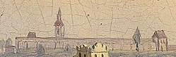 | Der Steyrer Taborfriedhof aus einer Stadtansicht von Mitte des 19. Jahrhunderts. | Diese Datei ist ein Ausschnitt aus einer anderen Datei | Autor/-in unbekannt Unknown author Ausschnitt: Lewenstein | Datei:Blick auf Steyr 19Jh Taborfriedhof.jpg | |
