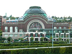 - Downtown Tacoma: Grenzen: Zwischen Pacific Avenue und St.-Helens-Straße. Der Mittelpunkt von Downtown Tacoma ist die Kreuzung von 9. Straße und Broadway, mit drei Theatern. Das Tacoma Convention Center, das Rialto Theater, das Pantages Theater, das Theater on the Square und das Bostwick Building sind markante Gebäude des Stadtteils. Der Weihnachtsbaum der Stadt wird ebenfalls jährlich in Downtown Tacoma aufgestellt. Das Tacoma Convention Center wurde 2004 für 84 Millionen Dollar errichtet und gilt als der wichtigste Faktor in der Beschleunigung des Wiederauflebens und Modernisierung des Viertels. Der Stadtteil ist bekannt für weitere historische Bauten, wie die ehemalige Union Station, das Winthrop Hotel und die Old City Hall. Weiterhin finden sich viele gastronomische Betriebe in Downton Tacoma, besonders an der Pacific Avenue.