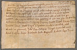 | Erstnennung Terenten u.a. Traditionen Freising aus Codex commutationum - BayHStA HL Freising 3b, eingeheftetes Perg.Blatt nach fol. 285, Bitterauf, Theodor: Die Traditionen des Hochstifts Freising, Bd. 2, 926-1283, München u.a., 1909, S. 450-451, Nr. 1604 | http://daten.digitale-sammlungen.de/bsb00003038/image_599 , there stored under a CC BY-NC-SA 4.0 Deed Attribution-NonCommercial-ShareAlike 4.0 International license | Bayerisches Hauptstaatsarchiv, person unknown (CC BY-NC-SA 4.0) | Datei:Erstnennung Terenten u.a. Traditionen Freising.jpg | |