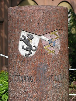 | Deutschland - Baden-Württemberg - Bodenseekreis - Tettnang: Gedenkstein "Städtepartnerschaft Tettnang - Saint-Aignan-sur-Cher"; Standort: am Montfortplatz, zwischen St.-Georgs-Kapelle und Neuem Schloss | Eigenes Werk | ANKAWÜ | Datei:D-BW-Tettnang - Gedenkstein Städtepartnerschaft.JPG | |