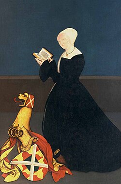 | Bernhard Strigel (nach 1513): Annenaltarflügel aus der St. Annakapelle in Tettnang (heute: Schloss Harburg). | Karl Heinz Burmeister: Geschichte der Stadt Tettnang . Universitätsverlag Konstanz, Konstanz 1997, ISBN 3-87940-595-6 . | Bernhard Strigel | Datei:Magdalena von Öttingen.jpg | |
