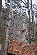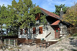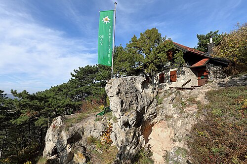 | Gipfel des Teufelsteins mit der Teufelsteinhütte in der niederösterreichischen Marktgemeinde Perchtoldsdorf . Die zwischen Kaltenleutgeben und Perchtoldsdorf und auf 542 m (lt. BEV) gelegene Schutzhütte wurde ab 1931 vom Österreichischen Gebirgsverein errichtet, am 12. Juni 1932 eröffnet und 1973 erweitert. | Eigenes Werk | C.Stadler/Bwag | Datei:Perchtoldsdorf - Teufelstein.JPG | |