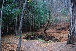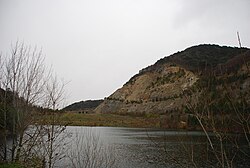 Auf den Steinbruch ist auch der See am Fuße des Steinbruchhanges zurückzuführen. Es handelt sich um eine Stelle, an der das Gestein 23 Meter tiefer als die Umgebung abgebaut wurde und die sich nach Einstellung des Abbaus mit Wasser füllte.[34]