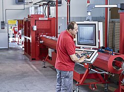 | PU-Extrusionsanlage, entwickelt zur Herstellung besonders anspruchsvoller Schläuche | Eigenes Werk | Thöni Gruppe | Datei:Thöni Schlauch-PU-Extrusionsanlage.jpg |