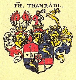 Die Thanrädl stammen aus Salzburg und kamen unter Maximilian I. nach Österreich. Wolfgang I. (1475–1535) war Verordneter und kaiserlicher Rat und Herr auf Thernberg und Rechberg.[2] Sein Sohn Andreas I. (1509–1566), ebenfalls kaiserlicher Rat und 1565 Regent der Niederösterreichischen Lande, konnte sein Erbe um Johannstein und Stranzendorf (bei Rußbach) erweitern. Später gehörte ihnen auch Ebergassing und Wienerherberg. Im Zuge der Auseinandersetzungen zu Beginn des Dreißigjährigen Krieges emigrierten manche evangelische Mitglieder nach Deutschland, so 1643 nach Obersachsen. Andreas II. Thanrädel wurde sogar geächtet und verlor seine Güter. Im 18. Jahrhundert erlischt die österreichische Linie dieses Adelsgeschlechts.