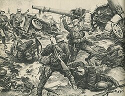 | Nach dem Durchbruch von Tolmein. Österreichische Infanteri im Kampf mit italienischen Truppen | Das Theo Matejko Buch | Theo Matejko | Datei:Matejko, Tolmein, 1917.jpg | |