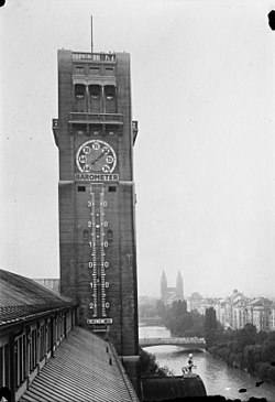 | Es folgt die historische Originalbeschreibung , die das Bundesarchiv aus dokumentarischen Gründen übernommen hat. Diese kann allerdings fehlerhaft, tendenziös, überholt oder politisch extrem sein. Das grösste Thermometer Deutschlands ! Das grösste Thermometer Deutschlands befindet sich am Turm des Deutschen Museums in München. Das Thermometer hat eine Höhe von 22 m und ist weithin sichtbar. | Dieses Bild wurde im Rahmen einer Kooperation zwischen dem deutschen Bundesarchiv und Wikimedia Deutschland aus dem deutschen Bundesarchiv für Wikimedia Commons zur Verfügung gestellt. Das deutsche Bundesarchiv gewährleistet eine authentische Bildüberlieferung nur durch die Originale (Negative und/oder Positive), bzw. die Digitalisate der Originale im Rahmen des Digitalen Bildarchivs . | Unbekannt Unknown | Datei:Bundesarchiv Bild 102-10090, München, Größes Thermometer Deutschlands.jpg | |