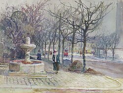 | Tiertränkebrunnen von 1916 in Wien (ursprünglich hinter der Secession aufgestellt) mit Passanten, signiert unten links: Carl Weihs, Aquarell auf Papier, sichtbare Bildgröße ca. 21 x 27,5 cm | Dorotheum : Info about artwork | Carl Weiss | Datei:Wien Tiertränkebrunnen.jpg |