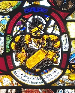 | Scheibe ist neben anderen Scheiben monitert. | Eigenes Werk | Marquart Zehender | Datei:Sudeley Castle, Hans Rudolf Tillier 1658.jpg | |
