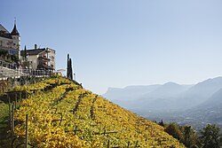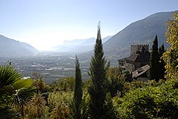 Schloss Tirol mit Meran im Hintergrund