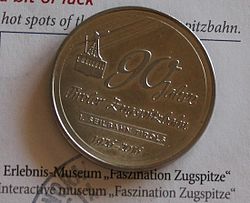 | Tiroler Zugspitzbahn 90 Jahre – Jubiläumsmedaille (2016) | Eigenes Werk | HUvB | Datei:Tiroler Zugspitzbahn 90 Jahre - Jubiläumsmedaille.JPG | |