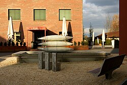 | Am Garnmarkt Flagship Store von Huber Tricot im Zentrum von Götzis , Vorarlberg . Der Brunnen wurde gestaltet von Tone Fink . | Eigenes Werk | böhringer friedrich | Datei:Tone Fink Brunnen Götzis.JPG |