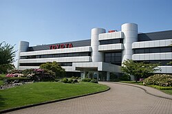 Toyota hat seinen Unternehmenssitz im japanischen Toyota und ist laut der Forbes-Global-2000-Liste das zehntgrößte börsennotierte Unternehmen der Welt (Stand: 2022).[5] Der Toyota-Konzern mit seinen 522 Tochterunternehmen hat insgesamt 372.817 Mitarbeiter (Stand: 2022[6]) und produziert außer in den 12 japanischen Werken an 51 Standorten in 26 Staaten. Darüber hinaus besitzt Toyota weltweit vier Designzentren.[7]