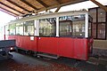 Alter Wagen (1961–2004) der Grazer Schloßbergbahn vor dem Hauptschuppen