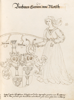 | Barbara of Matsch, Lady Trapp (wife of Jacob II von Trapp) | Die Chronik der Grafen von Zimmern, hrsg. von Hansmartin Decker-Hauff, Bd. 3, Darmstadt, 1967, S. 40 | Wilhelm Werner von Zimmern | Datei:Barbara of Matsch Lady Trapp.png | |