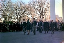 | Kennedy family leading funeral procession, 25 November 1963Washington, D.C. | John F. Kennedy Presidential Library and Museum, Boston | Robert Knudsen, White House | Datei:Kennedy family leading funeral procession, 25 November 1963.jpg | |