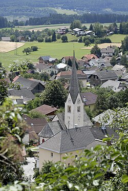 | Treffling with church seen from Northeast | Eigenes Werk | Haneburger | Datei:Treffling bei Seeboden.JPG |
