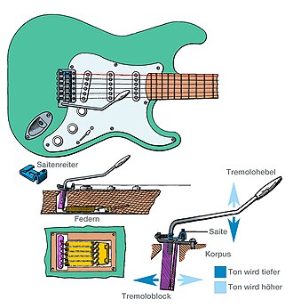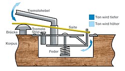 Tremolo[1] ist im Musikerjargon eine verkürzte, auf den Musikinstrumentenbauer Leo Fender zurückgehende Bezeichnung für „Tremolo-System“, ein mechanisches Vibratosystem (verkürzt als „Vibrato“ bezeichnet), das aus einer Vorrichtung am Saitenhalter von Gitarren besteht, mit der mittels einer Hebelbewegung mit einem sogenannten Tremolo- oder Vibratohebel Tonhöhenschwankungen erzeugt werden können.[2] Wird der Hebel bewegt, ändert sich die Spannung der Saiten und damit deren Tonhöhe.